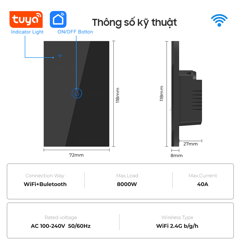– Công tắc công suất cao 8800W, đảm bảo sử dụng được với hầu hết các thiết bị điện trong gia đình một cách an toàn.