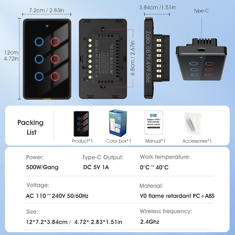 Ngoài dùng App điện thoại di động, công tắc cũng hỗ trợ điều khiển từ xa sóng RF433, với khoảng cách cảm biến siêu dài 100 mét mà không có vật cản. Một loạt các phương pháp kiểm soát có sẵn cho bạn lựa chọn.