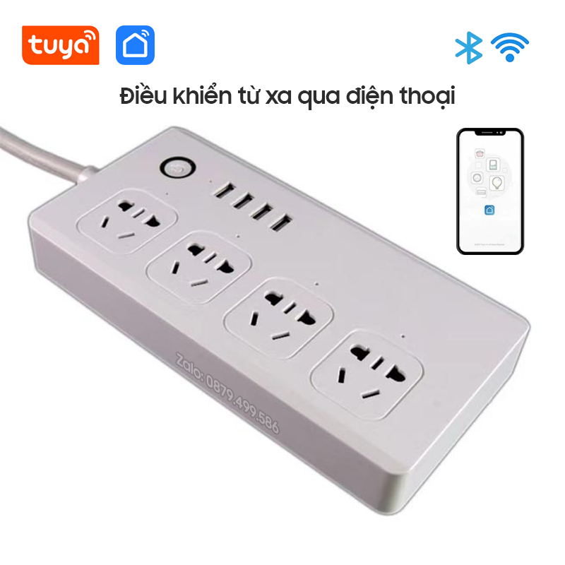 Ổ Cắm SO301 4 Cổng 10A 4 Cổng USB Wifi Điều Khiển Từ Xa Smart Life Tuya